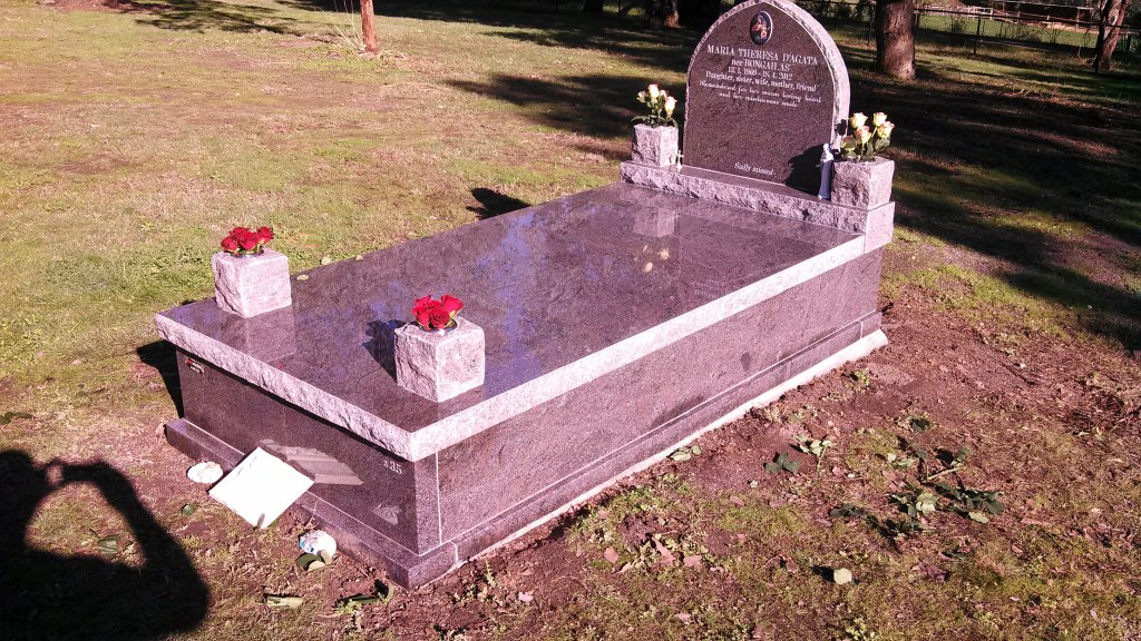 Years passed and I finally got around to ordering the monument for her grave site. This is a task I largely did on my own. One option I considered is not to have a fully enclosed monument, but to leave the top of the grave covered with decorative stones allowing small shrubs or bulb flowers to be planted. I didn’t discuss this with anyone but eventually talked myself out of it. Around that time, we were putting our house up for sale, and my niece and her husband came to help us clean up. We were about done for the day when my niece’s husband said to her, you must tell Steve about your dream. In my niece’s dream, my wife and I had bought a new house and were doing some landscaping. I was laying out some decorative stones and my wife came running out of the house frantically, yelling “No stones, no stones.” Spooky huh?