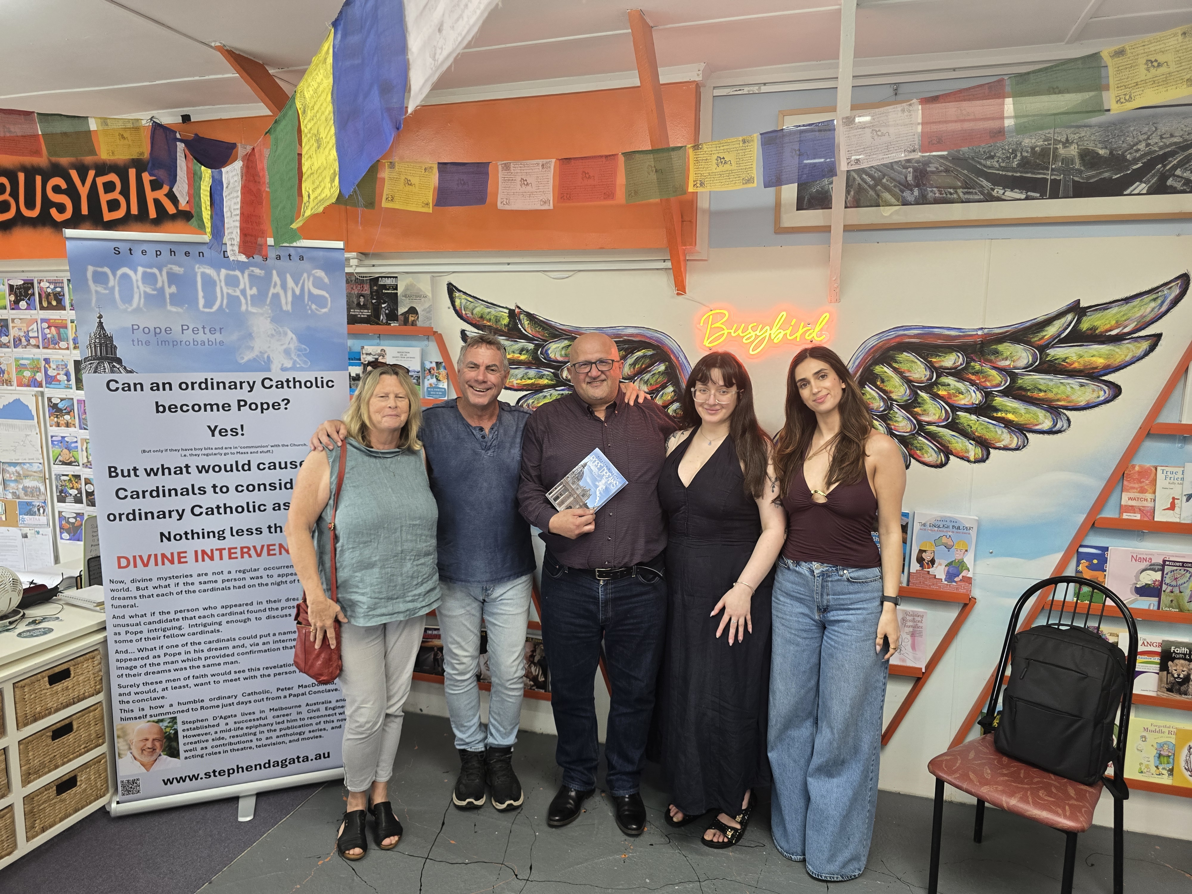 Huge thanks to Busybird Publishing for providing the venue for the event, Jennifer Tanti for providing a brilliant summary of the book, my offspring, including extended additions, who helps set up the event, and the many family and friends who attended.